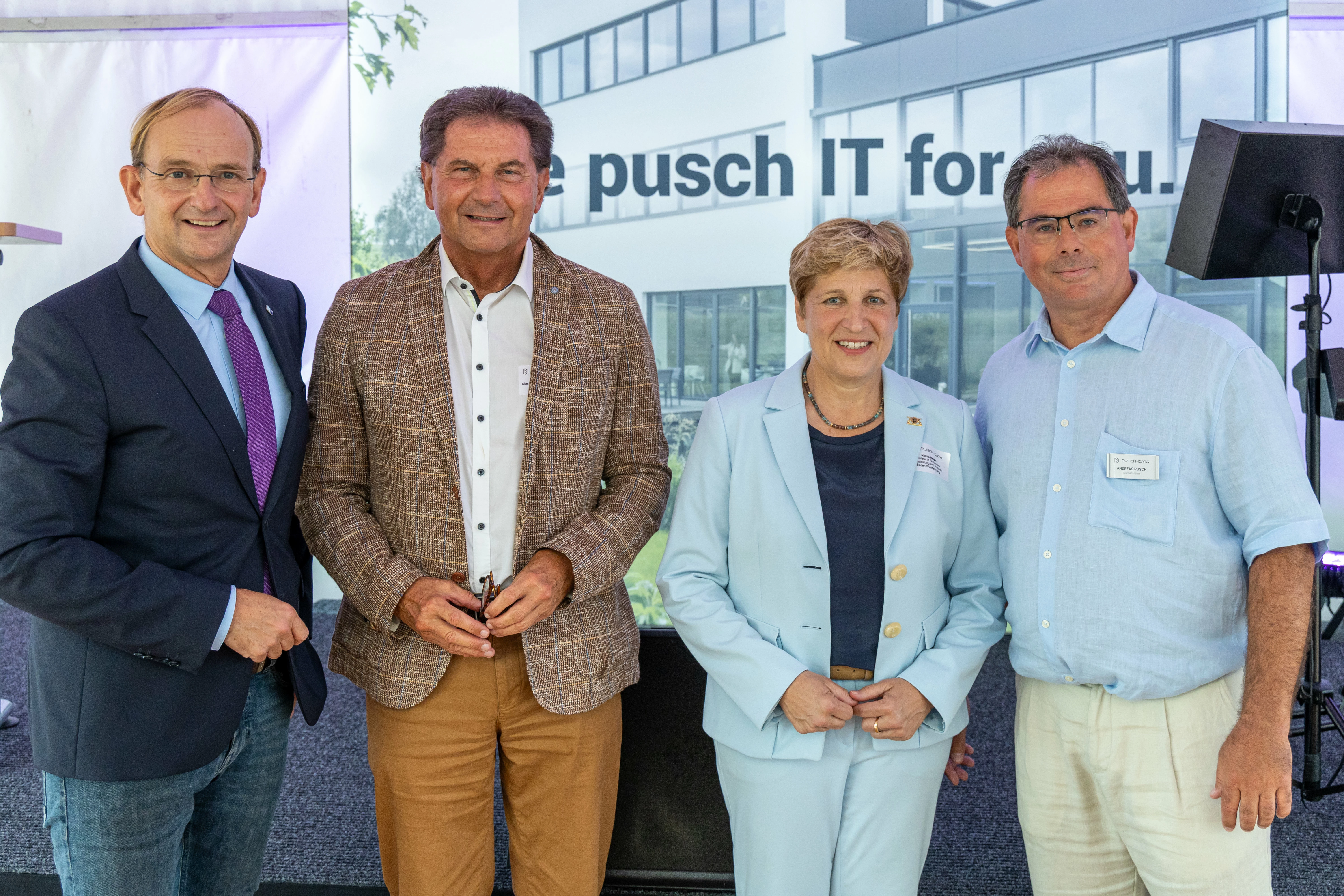 Die Ministerin für Landesentwicklung und Wohnen, Nicole Razavi überbrachte Glückwünsche im Namen der Landesregierung, gratulierte aber auch als Freundin des Unternehmens. Die Salacherin betonte, dass Unternehmen wie Pusch Data und Menschen wie Andreas Pusch das Land prägten. Pusch Data sei aus dem Filstal nicht mehr wegzudenken. Mit Leidenschaft, Visionen und Verbundenheit zur Heimat treibe Pusch die Dinge voran. Verwurzelung und Bekenntnis zur Region gingen mit wirtschaftlichem Erfolg Hand in Hand. Dadurch blieben Wertschöpfung, Arbeitsplätze und Knowhow hier. Pusch Data sei mit seinen kreativen Mitarbeitern, mit der gesamten Pusch Data-Familie ein Aushängeschild für die Region.